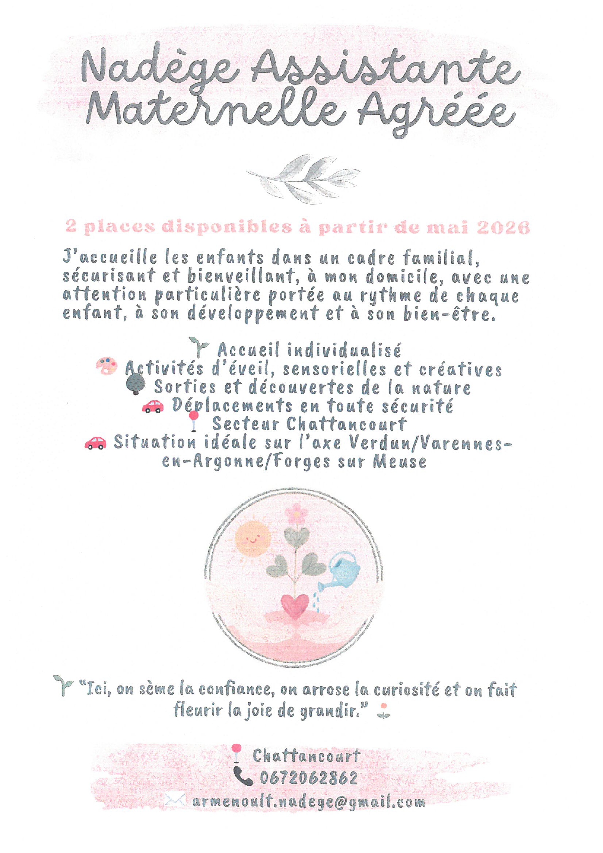 Assistante maternelle : 2 places disponibles à partir de mai 2026